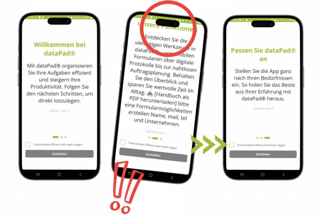 Bedienerfreundliche, barrierefreie Menüführung der dataPadGO App .