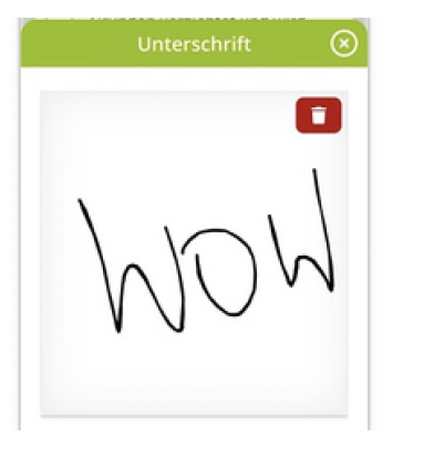 Unterschrift direkt vor Ort erfassen. Signatur erscheint automatisch im PDF wie eine handschriftliche Unterschrift.