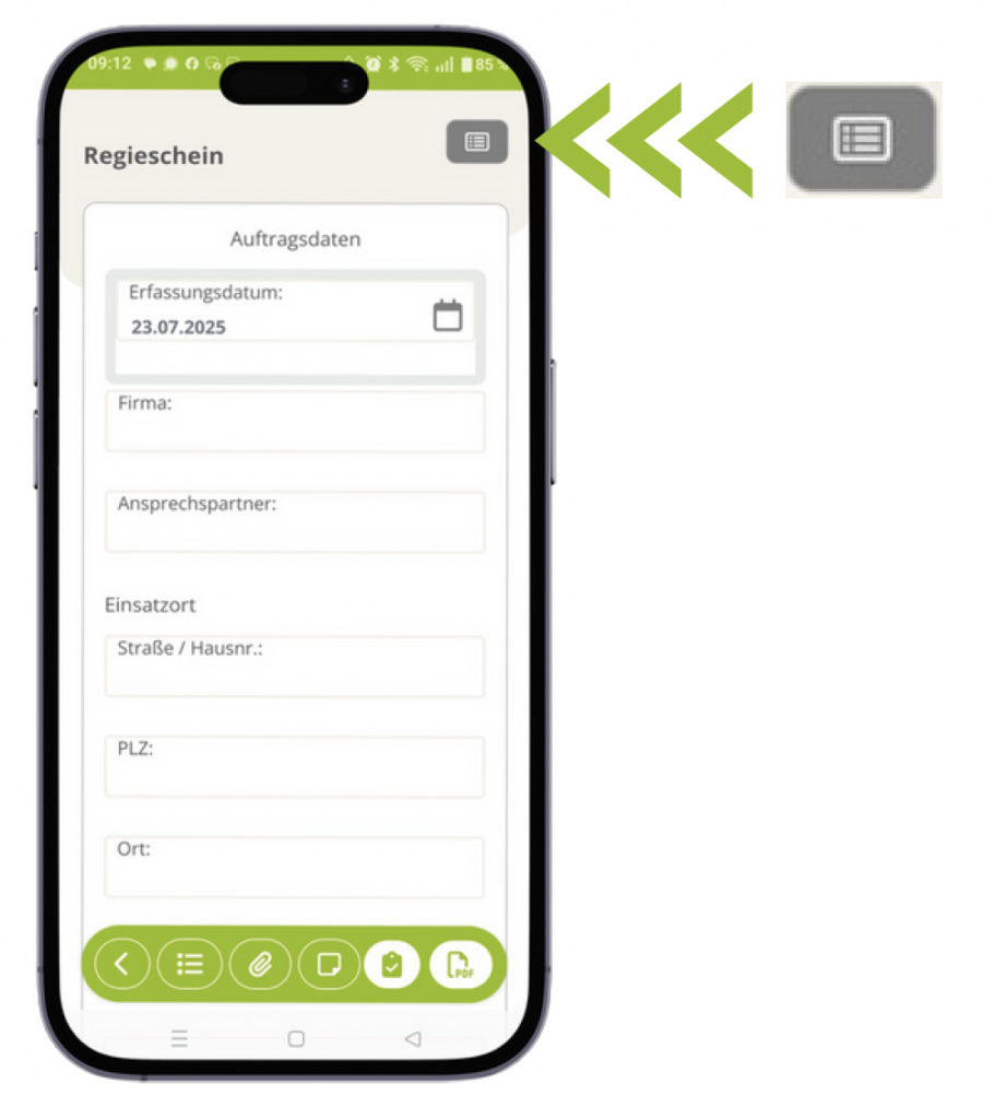Button oben nutzen, um hinterlegte Datensätze automatisch ins Formular zu übernehmen. Mit einem Klick auswählen, eingefügt wird direkt in die Vorlage. Diese Funktion spart Zeit und vermeidet doppelte Eingaben.